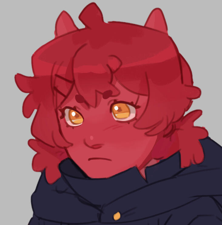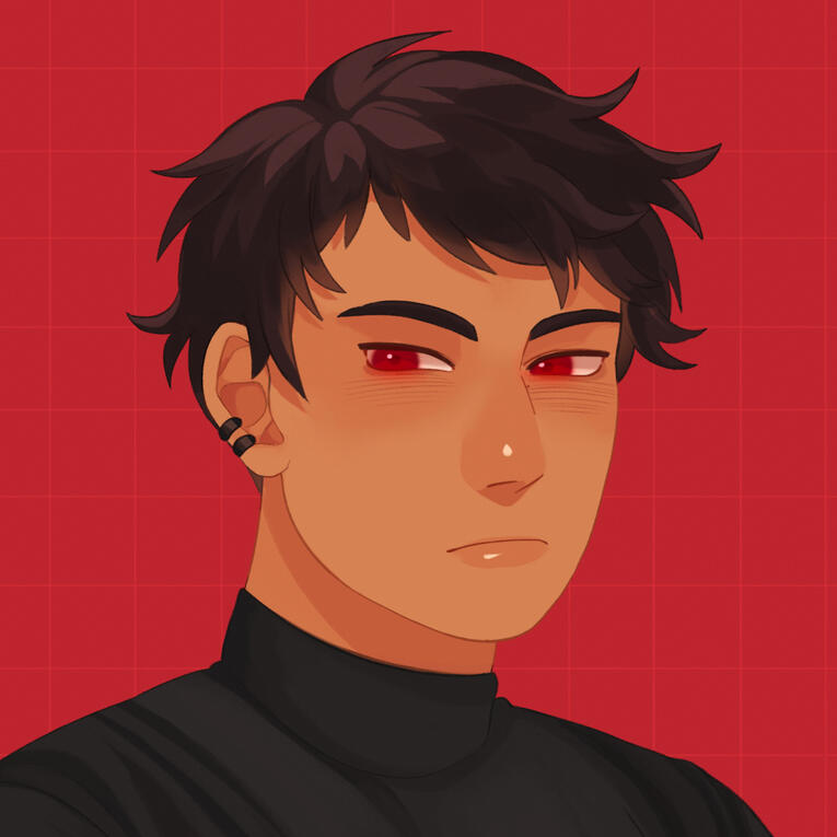 Raziel is considered relatively young for a demon, only being in the 3,000s. Her age has lead to a lot of teasing in the office, but has contibuted to her tech-savvy nature. She maintains order among Hell's Discord server among other tech-related tasks, often being the first one to ask about earthly matters. Whenever pride campaigns or pandering corporate memes are being considered, Raz is usually the one to put her hands to the keyboard and get it done.She is extremely short-tempered, even among the other demons in the workplace. Save for her boss, her death stare is enough to make most leave her be. To her dismay, Raz finds that many of her coworkers and bosses want to constantly distract and bombard her with menial questions. At times she feels like the state of Hell rests completely on her, being the only competent one among a mass of brain-dead morons who only care for torture and gore. Raz believes firmly in her own intelligence and competence, wanting to get things done herself rather than let others handle it at risk of doing things incorrectly. Perhaps this has given her a bit of an ego, but she would argue it is deserved for all she must face.Raz finds difficulty interacting with others. She finds herself to be too irritable and too socially inept to get through most conversations normally, and has thus sworn off trying to make friends in the workplace altogether. Despite being logically-minded, she finds a lot of trouble figuring out the right things to say or do. It's much easier for her to focus on keeping her head down and getting through the workday.Raz is also considered an outlier among demons for her strong aversion to blood. Being a hater of all things gory, her squeamish nature is contrasted by the many company-mandated torture retreats. She tries her best to hide her very apparent fear, poorly maintaining a veil of narcissistic competence, but this is easily seen through by most--including her boss.