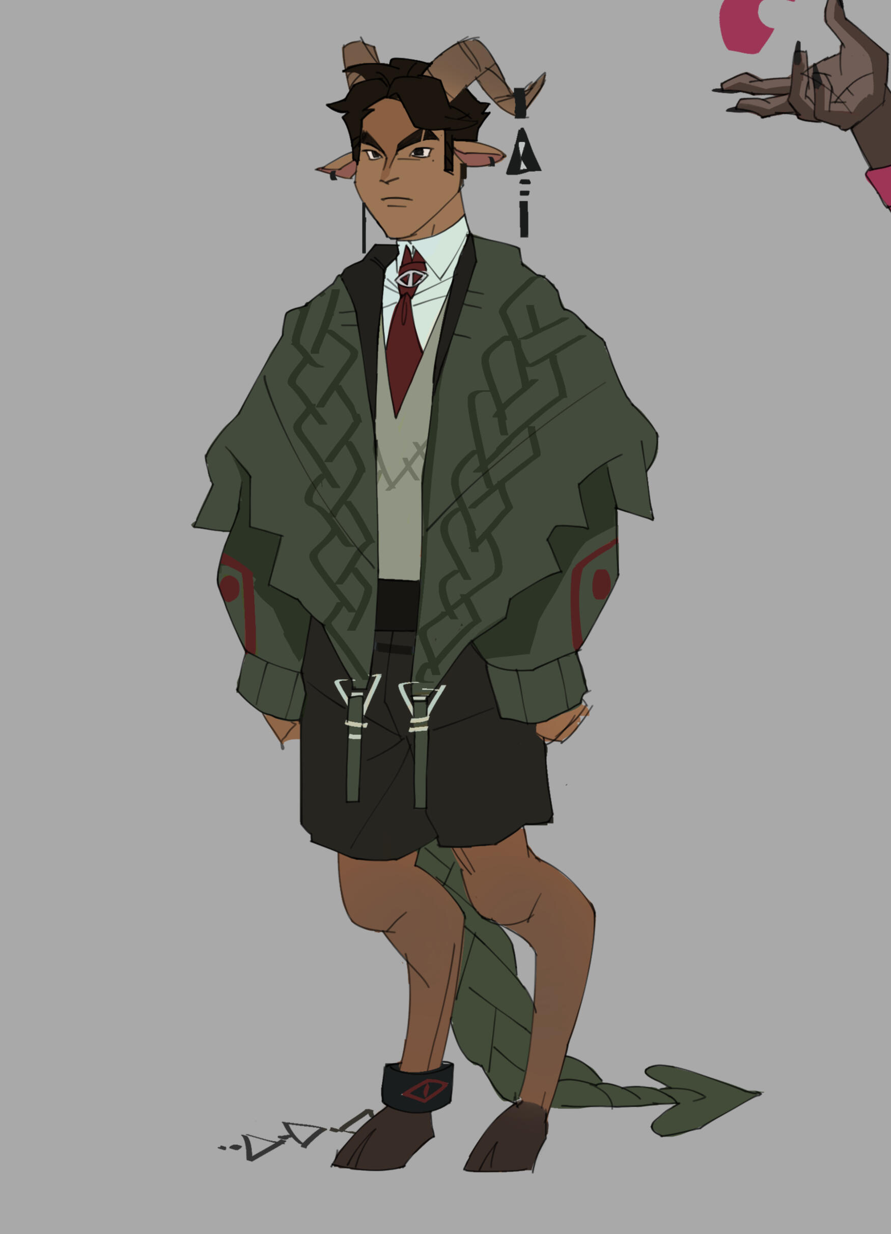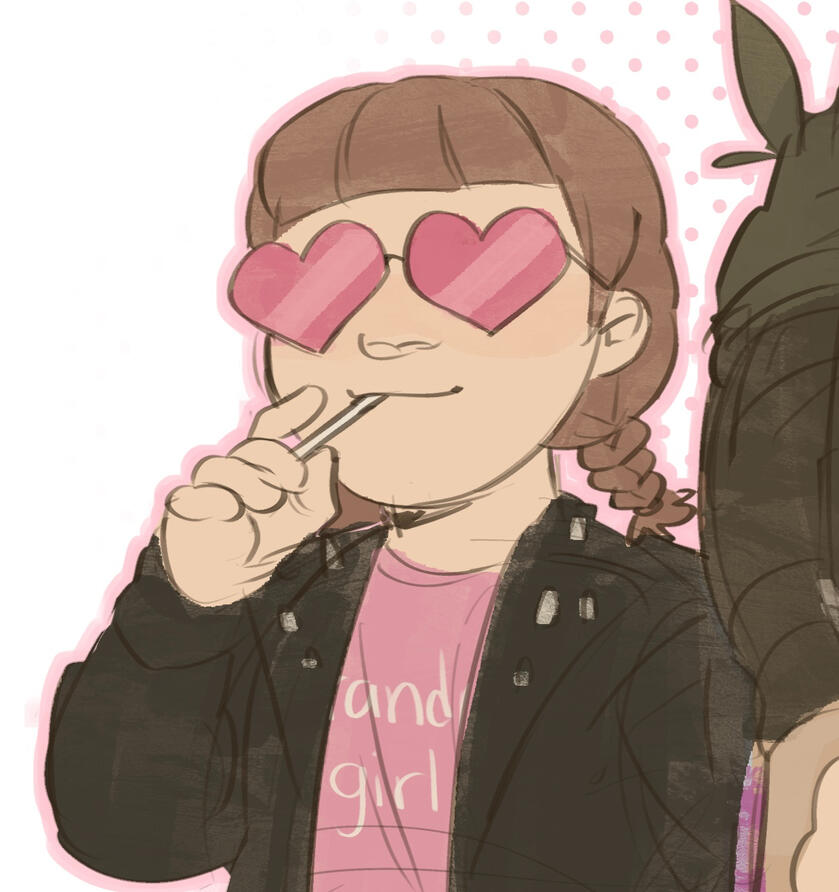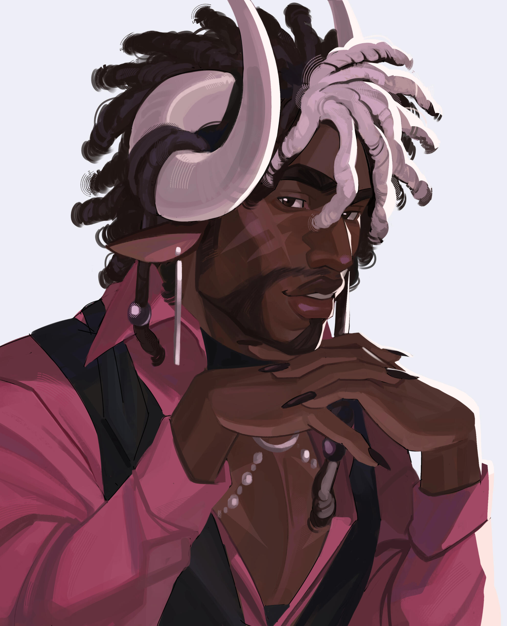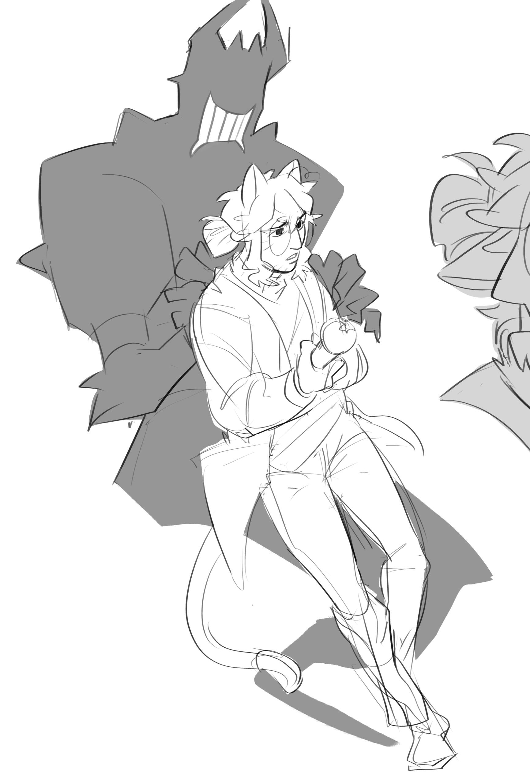 ・Has a weird way of sitting in chairs with her knees drawn to her chest.・Extremely squeamish and easily frightened, an uncommon trait among demons. She usually plays it off, though, not wanting to be seen as an easy target in the office.・Has a cabinet dedicated to her candy stash, which she had to hide after it was continuously stolen off her desk. Will sometimes be chewing on a lollipop to manage sugar levels despite not being much of a sweet tooth.・Awful at multitasking. Will yell at you if you try to talk to her while she’s in the middle of something.・One of the more chronically online demons. Because of her tech savvy-ness she is often tasked with helping Damon connect to the Wi-fi for the seventh time that week.