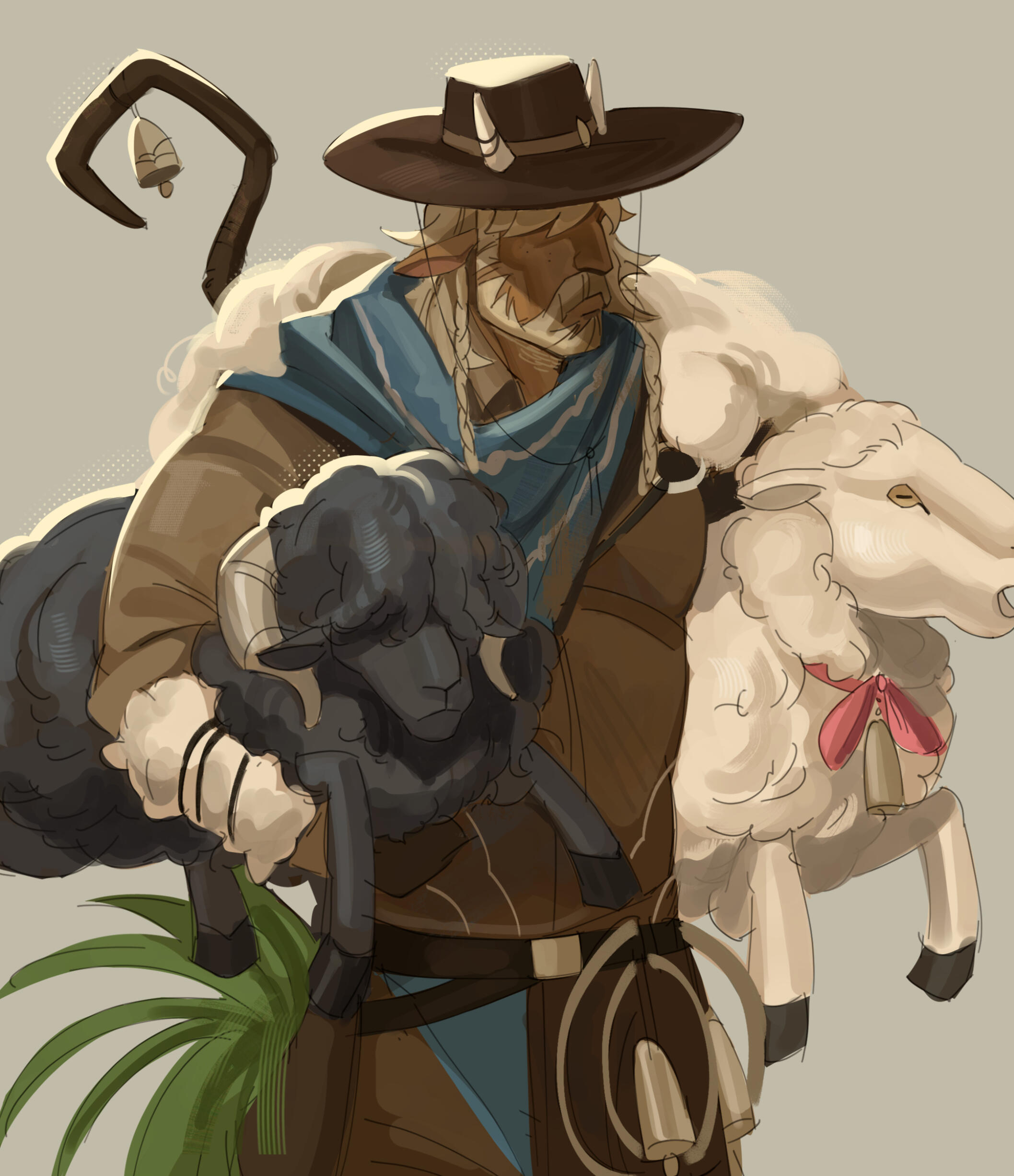 ・He is able to recognize each and every one of his sheep individually, no matter how similar they look. He also tends to give them human names.・Hates any moving vehicle, as he gets motion sickness easily. Shep also generally dislikes modern inventions.・Finds comfort in music. He owns a music box that he holds quite dear, and will rarely venture into town in order to hear bands perform during festivals・Had formerly lived a more action-packed life but decided to move to the countryside in order to get away from it all. He still has some enemies from that time, but isn't too concerned over if they will eventually find him.・Has a heavy smell of dirt, pine, and grass.