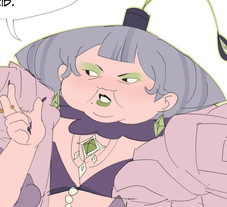 Working in the divine message division, Eda is meant to use her omnipotence for serious worldly matters. However, she seems to take a different approach to this. Eda would rather use her knowledge to seek out the latest office drama, either to add to it or just watch the trainwreck from afar. After many years of predicting catastrophic events, she finds personal matters to be much more interesting than some nebulous catastrophe.Eda herself is very easygoing, albiet nosy. She is usually a voice of reason in the workplace when she wants to be, but often prefers to watch how things play out on the sidelines. They are fascinated with how others without future knowledge act in their day-to-day lives, and thus does not disclose any visions they may have. This is also why they are interested in things such as astrology and tarot, finding enjoyment and charm in the ways others attempt to make sense of the world.Despite her propensity for helping perpetuate gossip, Eda is a reliable figure to talk to. Her calm demeanor makes it incredibly easy to share any problems with her. They may not be the most diligent angel, but still show the virtues one would have.