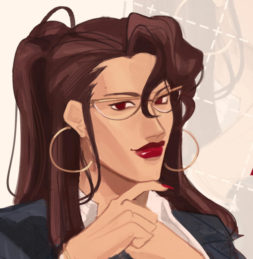 Zoru acts very motherly to those around her, enjoying being seen as a "big sister" type--likely due to her status as the youngest sibling among her family. She will usually dote on those around her, fussing over eating habits and making sure her colleagues are doing well. Zoru particularly enjoys speaking with more introverted people, feeling very protective over those who may not speak up for themselves. She hopes to be the kind of person that people see as comforting and put-together, able to speak with her about problems they may have.Before she took up the job as a secretary, Zoru was known to be quite wild in her youth. She was extremely irresponsible and reckless, and still maintains the somewhat-flirtatious attitude she had when she was younger. She has since given up the chaotic life she used to life, deciding to settle down and live a more conventional life. While she sometimes longs for the days of freedom and lack of responsibilities, she's ultimately satisfied with her choices.