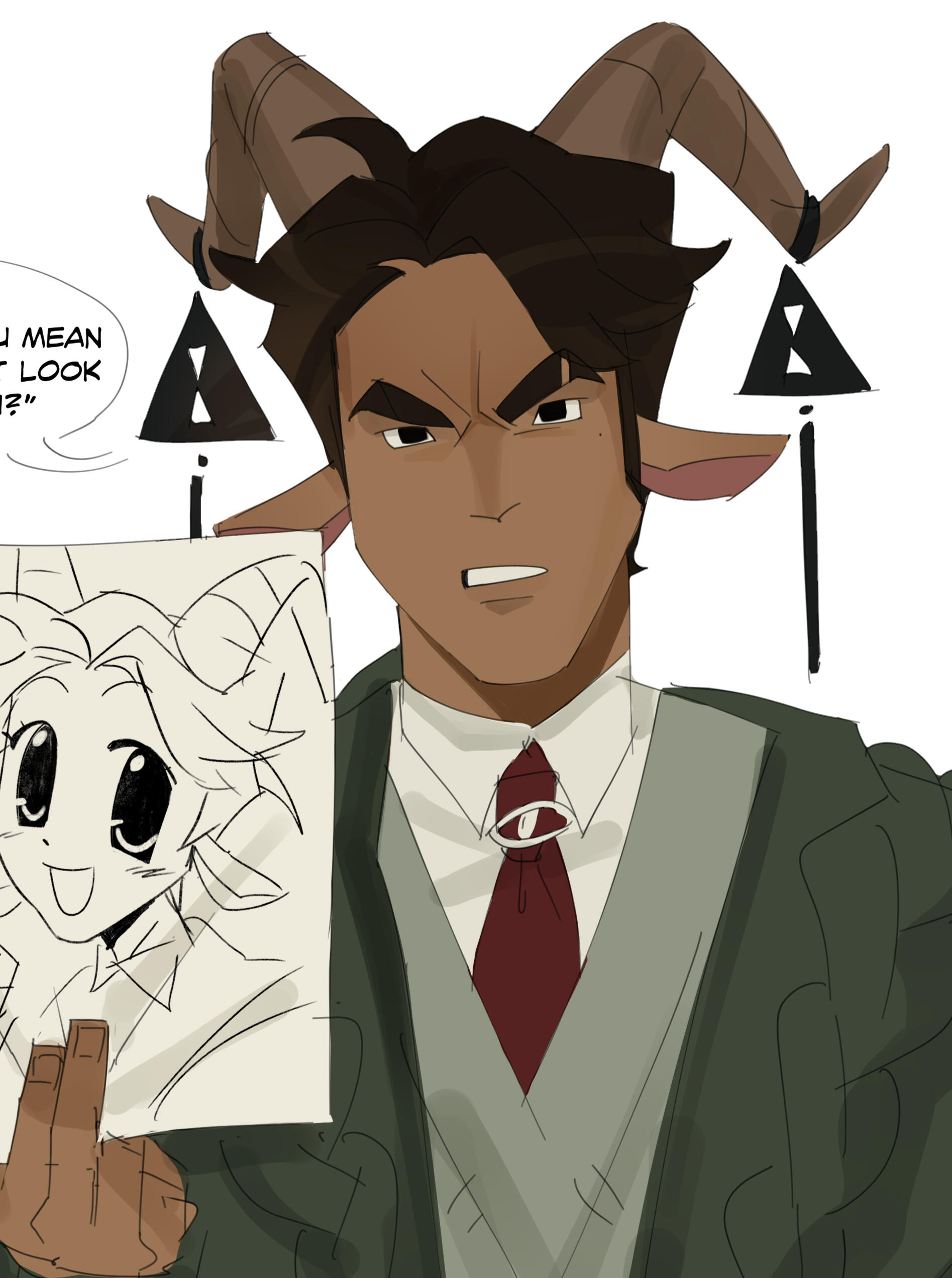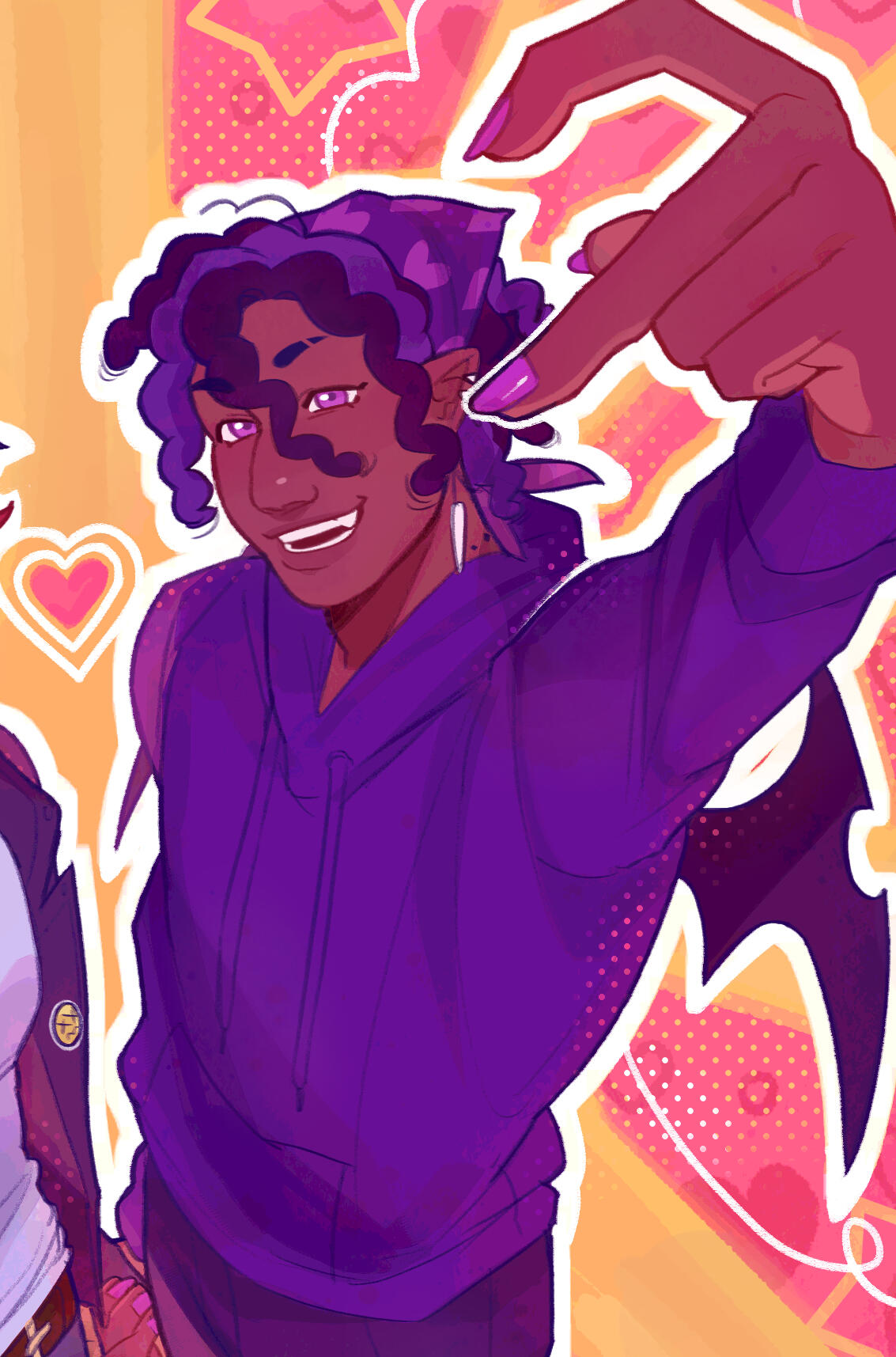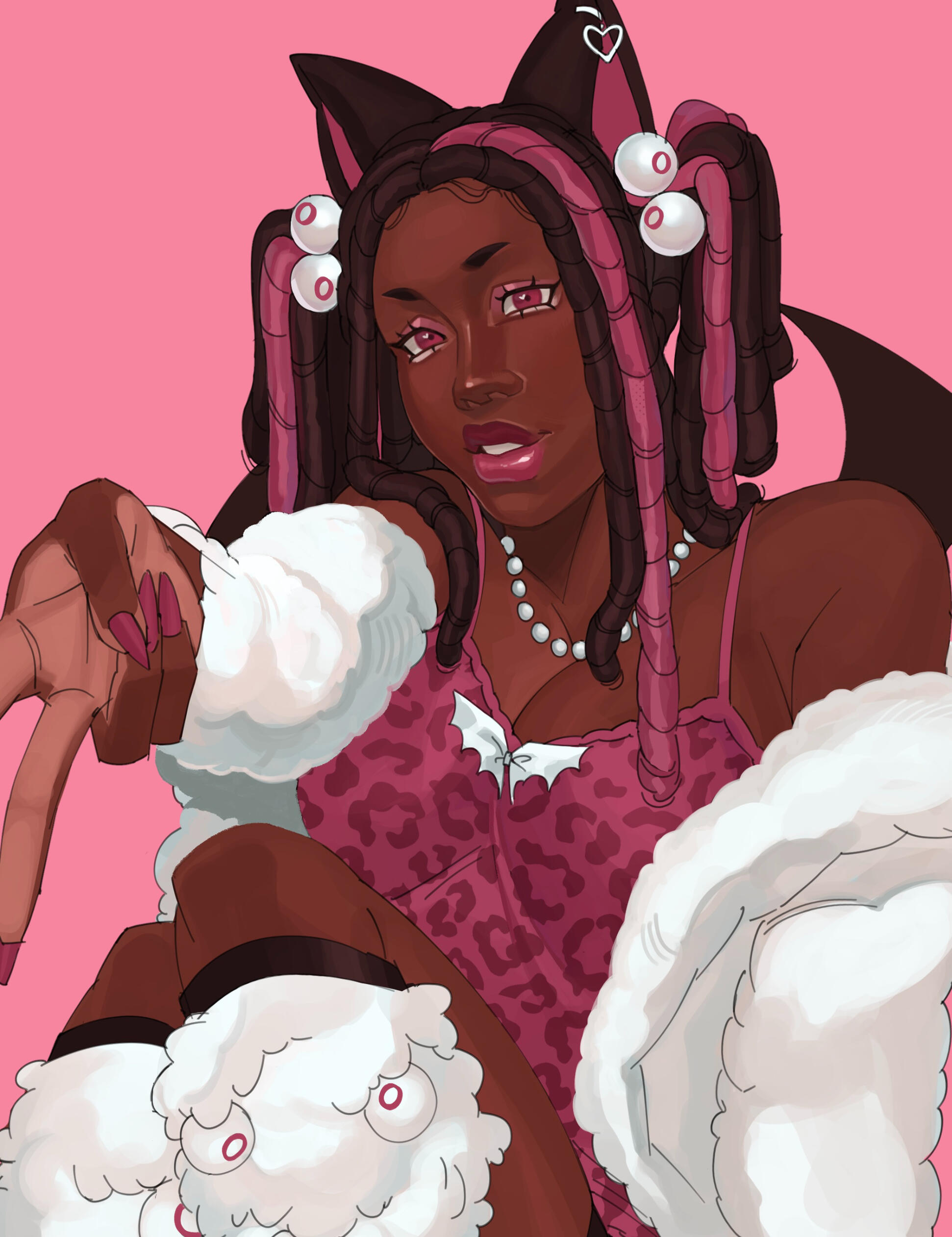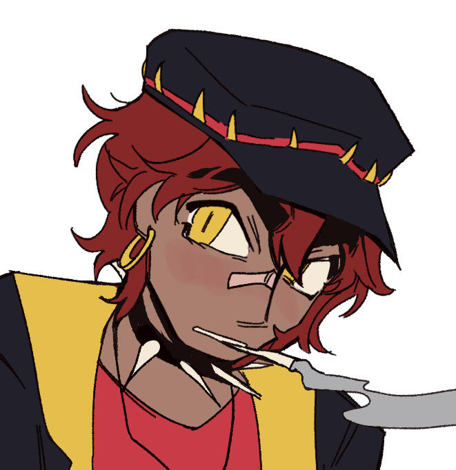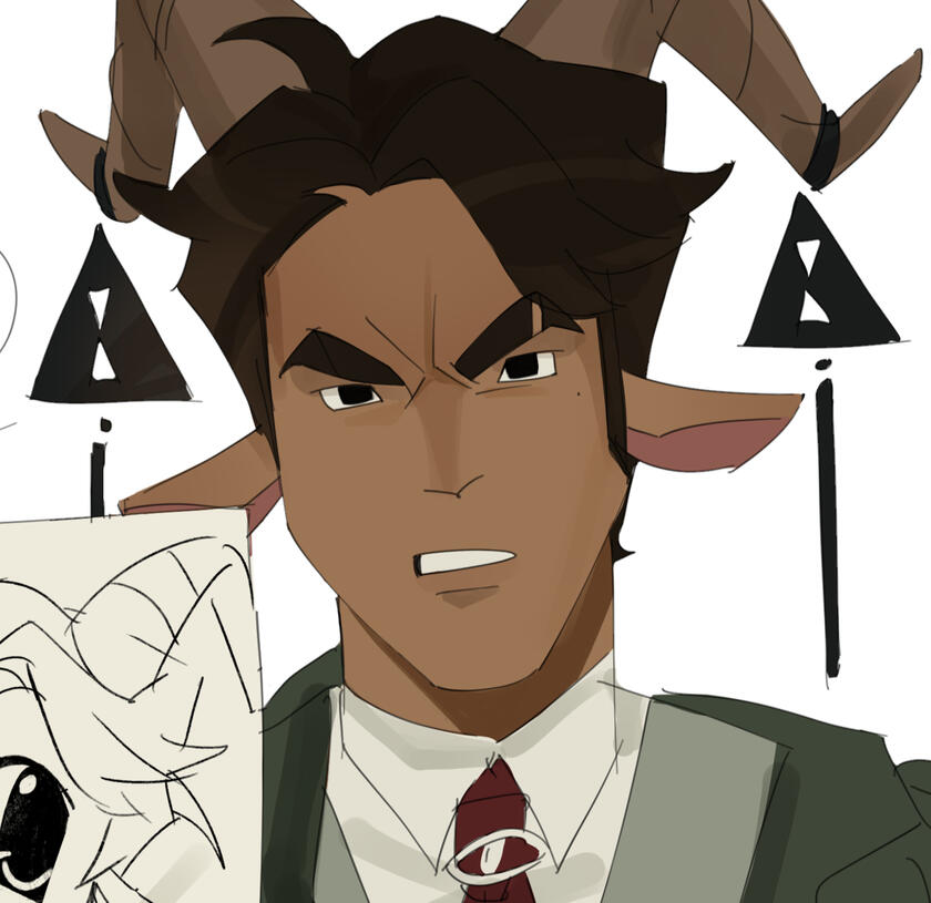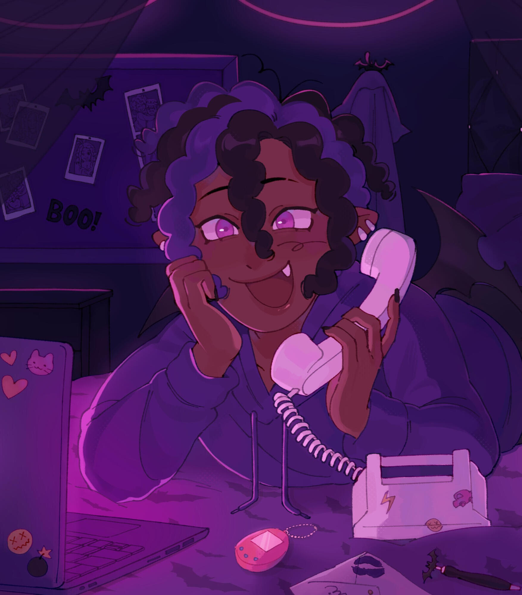 ・Has a weird way of sitting in chairs with her knees drawn to her chest.・Extremely squeamish and easily frightened, an uncommon trait among demons. She usually plays it off, though, not wanting to be seen as an easy target in the office.・Has a cabinet dedicated to her candy stash, which she had to hide after it was continuously stolen off her desk. Will sometimes be chewing on a lollipop to manage sugar levels despite not being much of a sweet tooth.・Awful at multitasking. Will yell at you if you try to talk to her while she’s in the middle of something.・One of the more chronically online demons. Because of her tech savvy-ness she is often tasked with helping Damon connect to the Wi-fi for the seventh time that week.
