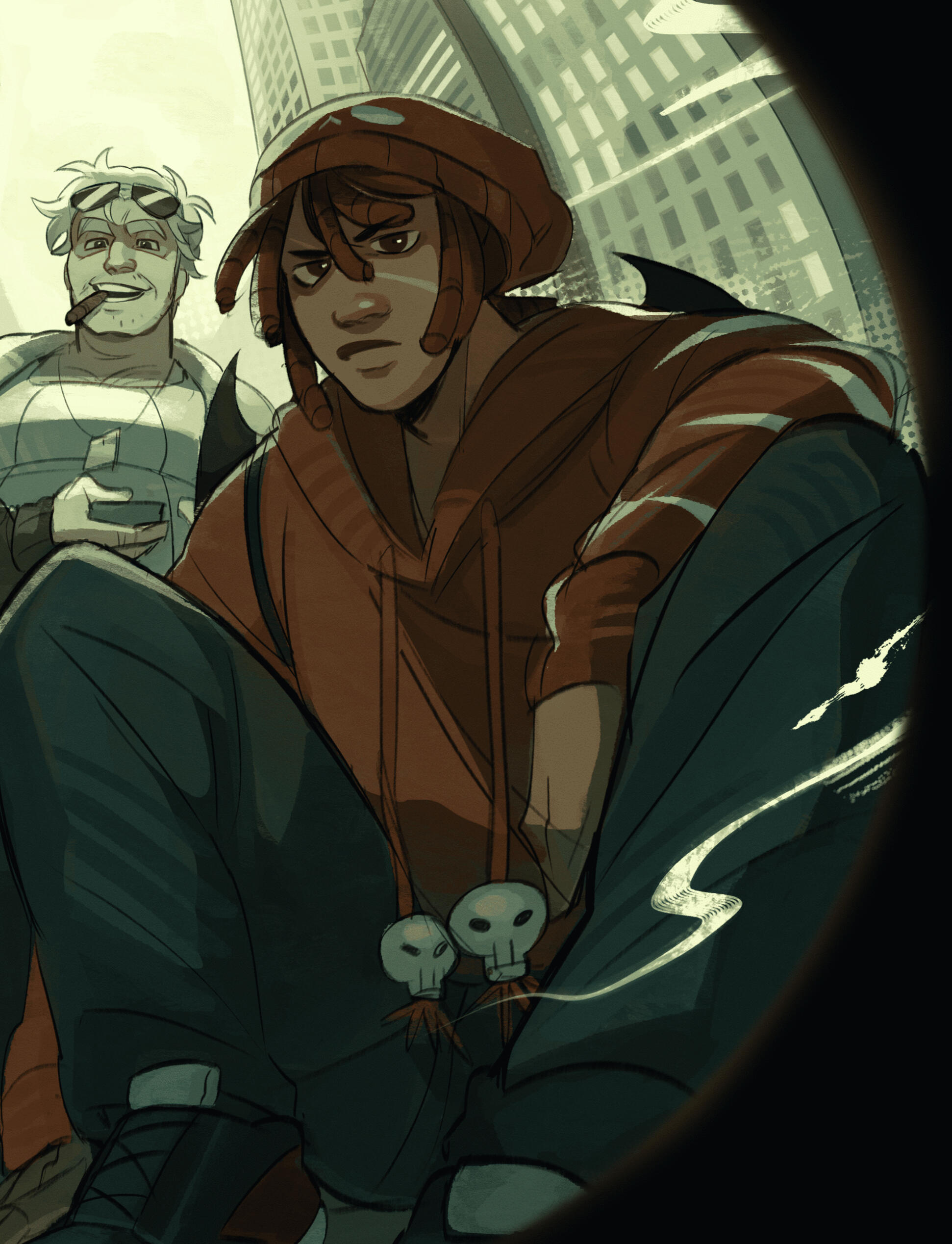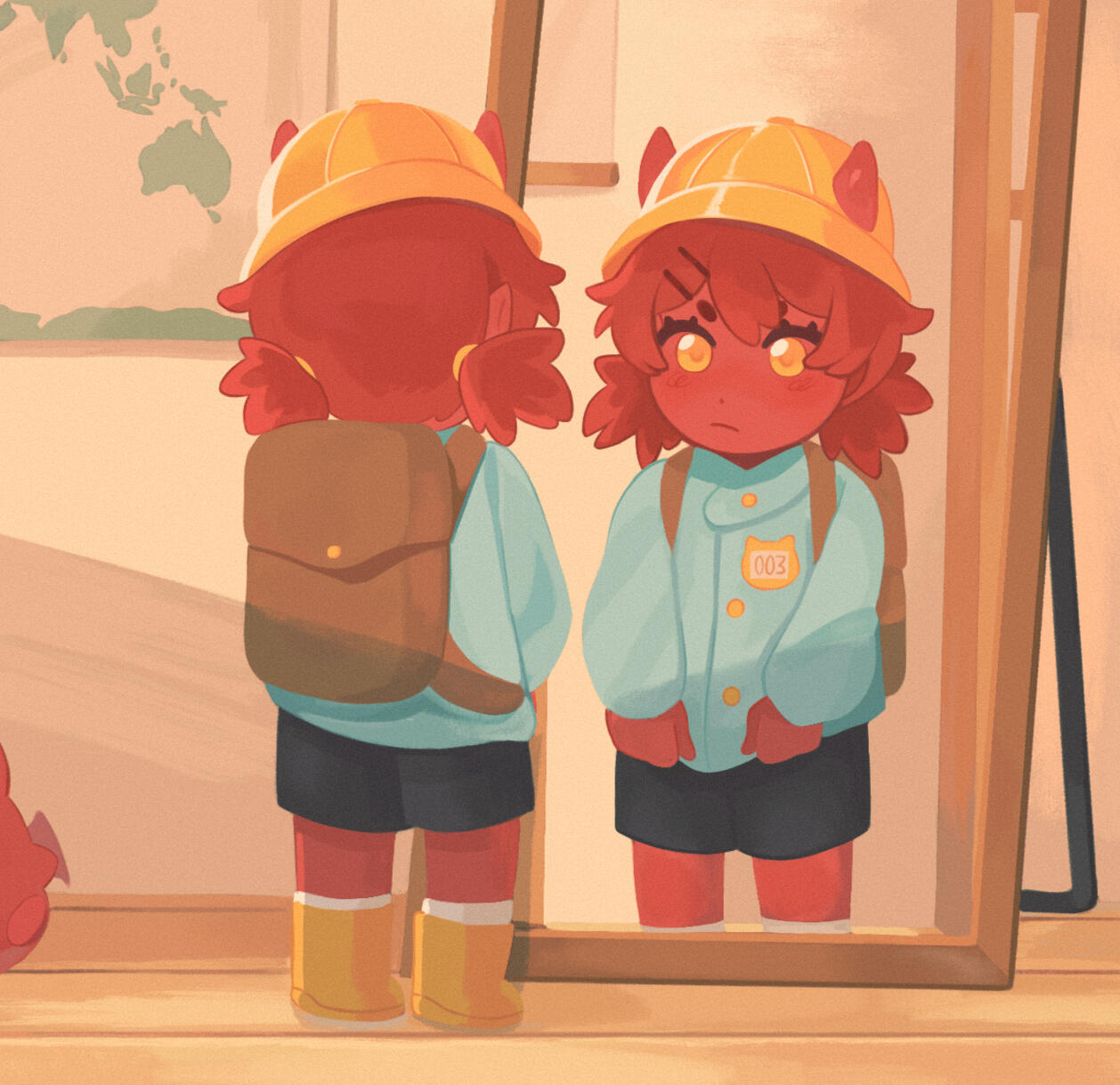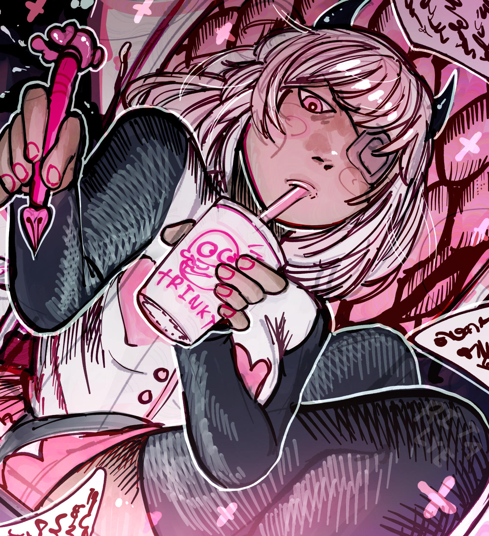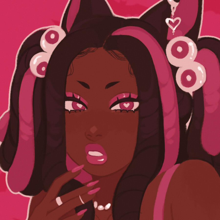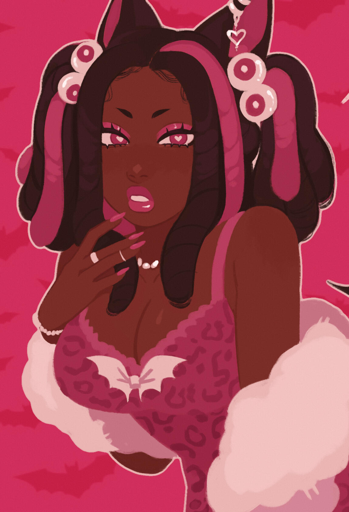 ・Has a weird way of sitting in chairs with her knees drawn to her chest.・Extremely squeamish and easily frightened, an uncommon trait among demons. She usually plays it off, though, not wanting to be seen as an easy target in the office.・Has a cabinet dedicated to her candy stash, which she had to hide after it was continuously stolen off her desk. Will sometimes be chewing on a lollipop to manage sugar levels despite not being much of a sweet tooth.・Awful at multitasking. Will yell at you if you try to talk to her while she’s in the middle of something.・One of the more chronically online demons. Because of her tech savvy-ness she is often tasked with helping Damon connect to the Wi-fi for the seventh time that week.