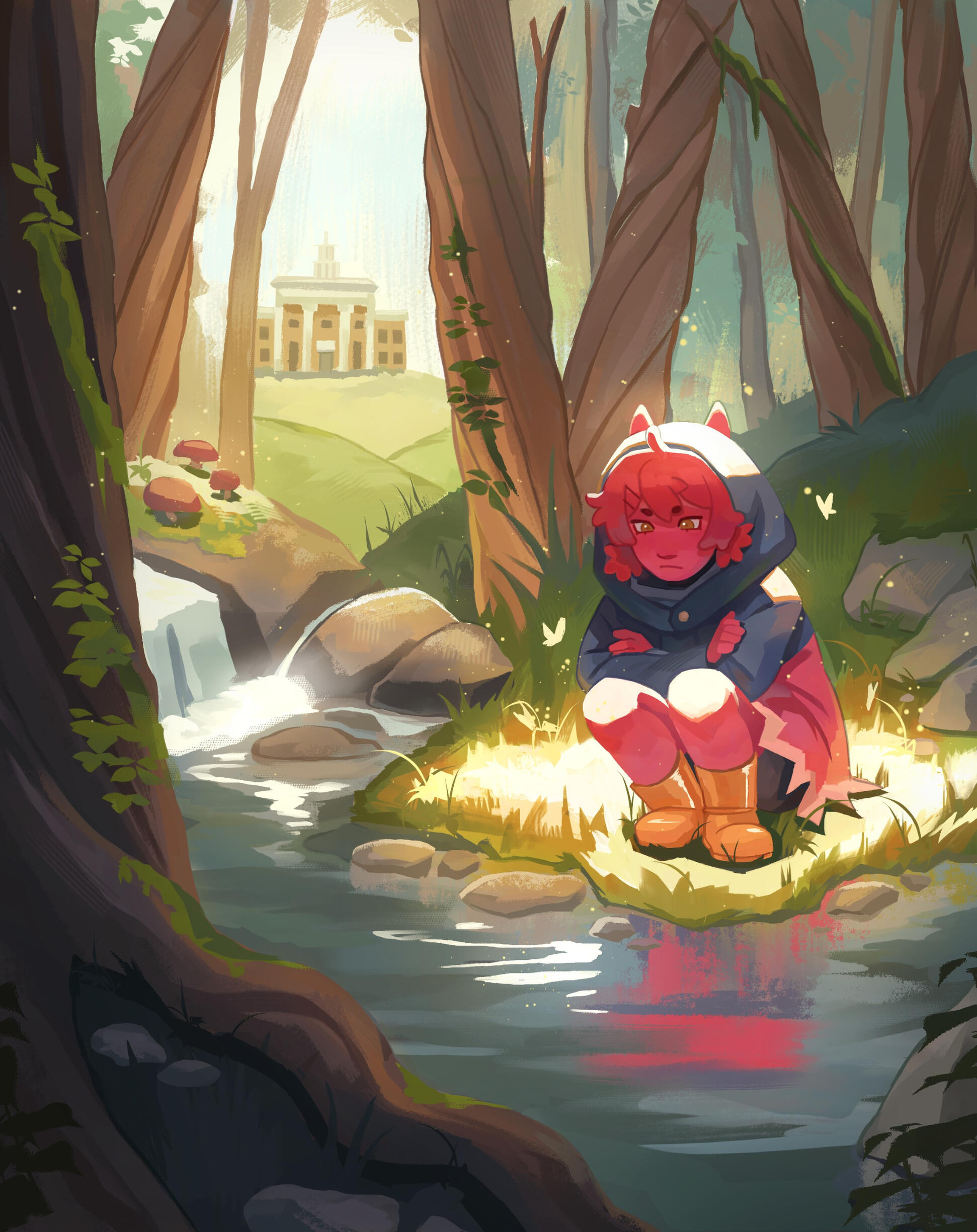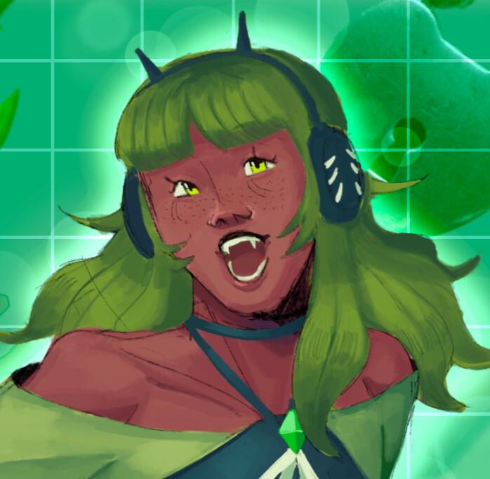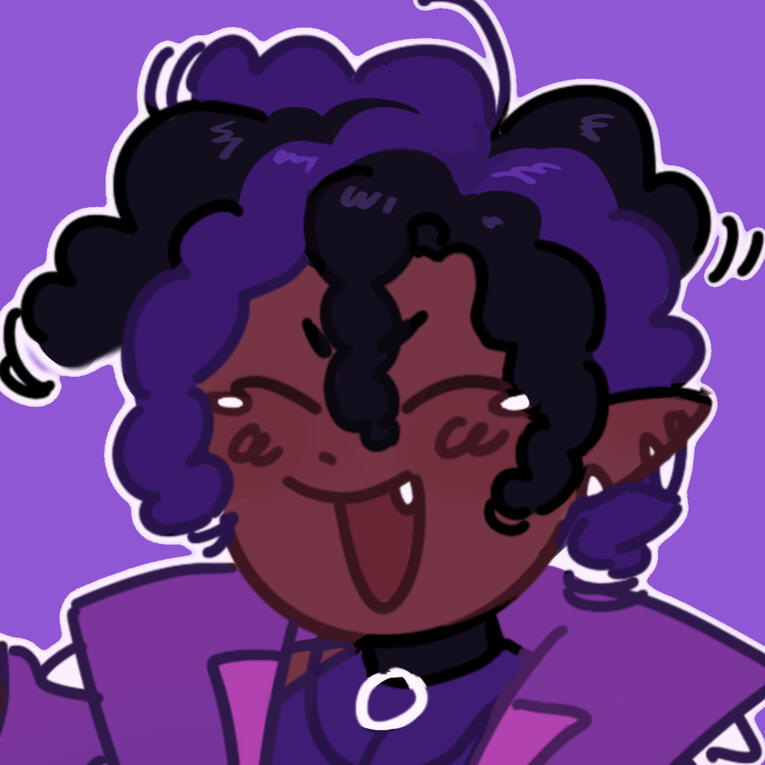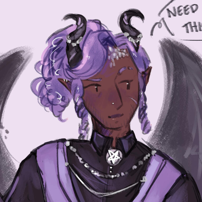 Raziel is considered relatively young for a demon, only being in the 3,000s. Her age has lead to a lot of teasing in the office, but has contibuted to her tech-savvy nature. She maintains order among Hell's Discord server among other tech-related tasks, often being the first one to ask about earthly matters. Whenever pride campaigns or pandering corporate memes are being considered, Raz is usually the one to put her hands to the keyboard and get it done.She is extremely short-tempered, even among the other demons in the workplace. Save for her boss, her death stare is enough to make most leave her be. To her dismay, Raz finds that many of her coworkers and bosses want to constantly distract and bombard her with menial questions. At times she feels like the state of Hell rests completely on her, being the only competent one among a mass of brain-dead morons who only care for torture and gore. Raz believes firmly in her own intelligence and competence, wanting to get things done herself rather than let others handle it at risk of doing things incorrectly. Perhaps this has given her a bit of an ego, but she would argue it is deserved for all she must face.Raz finds difficulty interacting with others. She finds herself to be too irritable and too socially inept to get through most conversations normally, and has thus sworn off trying to make friends in the workplace altogether. Despite being logically-minded, she finds a lot of trouble figuring out the right things to say or do. It's much easier for her to focus on keeping her head down and getting through the workday.Raz is also considered an outlier among demons for her strong aversion to blood. Being a hater of all things gory, her squeamish nature is contrasted by the many company-mandated torture retreats. She tries her best to hide her very apparent fear, poorly maintaining a veil of narcissistic competence, but this is easily seen through by most--including her boss.