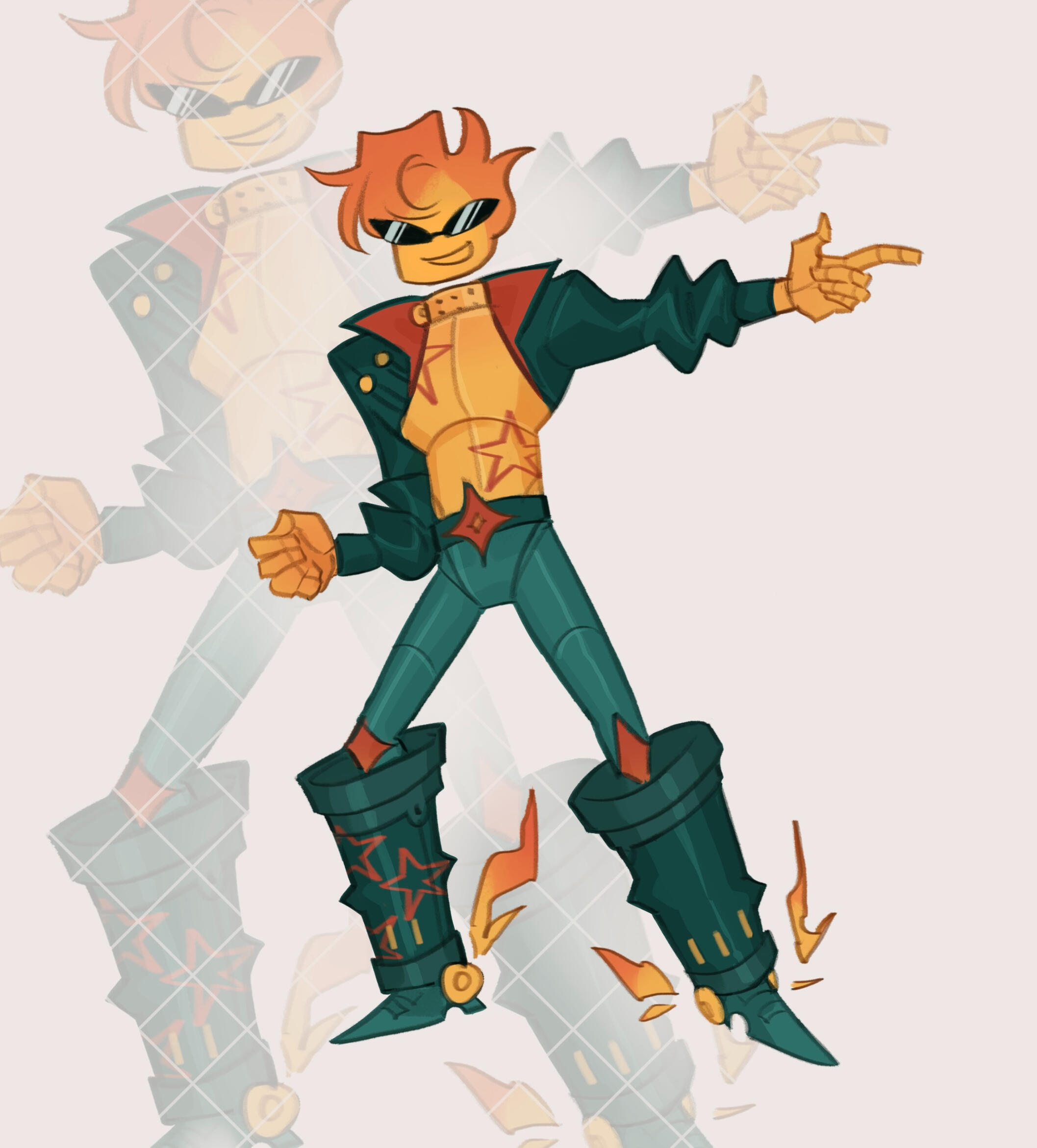 ・Vega is himself a flame, and maintains the same properties as one. He sustains himself on wood, coal, and paper if he’s desperate, his temperature lowering and flame becoming smaller without any fuel. His temperature, size, and color also depends on his mood.・Water can kill him, and high wind speeds can temporarily put out his flame, effectively blinding him (despite not having any visible eyes).・Vega’s suit is made of a lightweight but durable metal built to withstand heat. This suit lends him a fair amount of power and range, able to extend his limbs at will.・He will get offended when people try to cook things on his head or upon fire being used for menial tasks. He sees the act of having a marshmallow dangled over his head demeaning for all flame-kind.