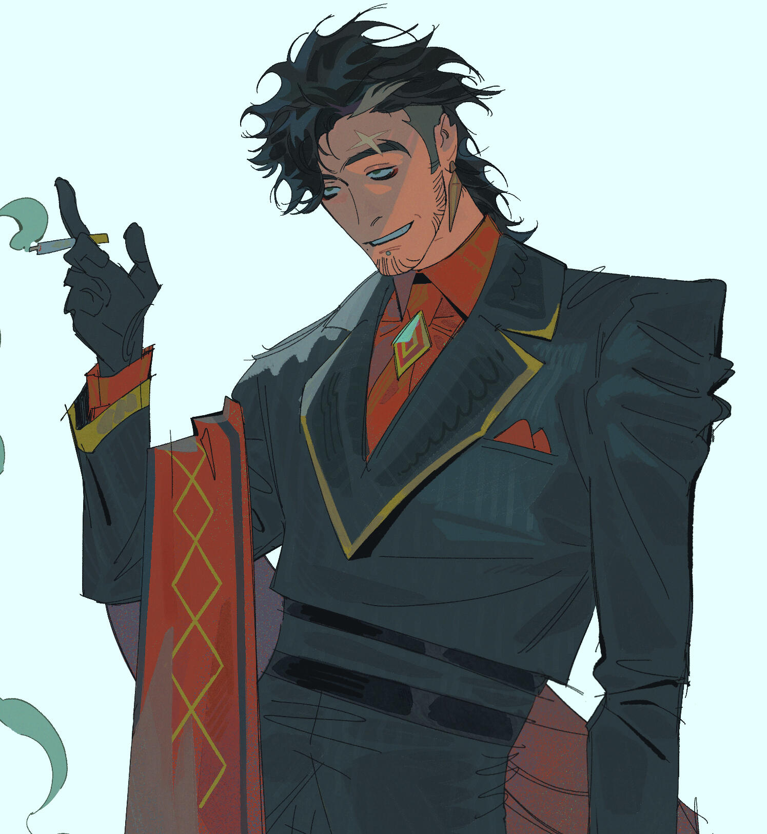 Vega is an eccentric figure, always one to be the loudest in the room with his bold personality. He likes to see himself as some suave hero, which is usually not the case in most circumstances. Despite his big ego, he generally tries to do the right thing. Vega enjoys the happiness and wellbeing of overs, especially when he can be the cause of a smile. Though, when someone attractive is involved, he loses all self-respect and will do whatever they say. Truly down horrendous.He enjoys traveling and seeing different things, picking up various dishes along the way. Vega considers himself a fan of fried and spicy food, always experimenting with different flavors despite the result. He'd like to eventually open up his own restaurant after seeing and learning all that he can, putting his experiences to use with a partner by his side. Though, he's satisfied with his life of surprise as it is currently.